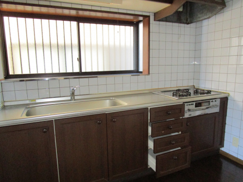 システムキッチンクリーニング済みです。大きな出窓があり明るいキッチンスペースです♪