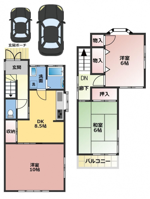 敷地面積は33坪、駐車スペース普通車1台・小型車1台分あります。ホワイトの明るいきれいな外観です♪